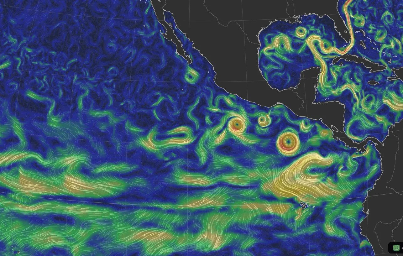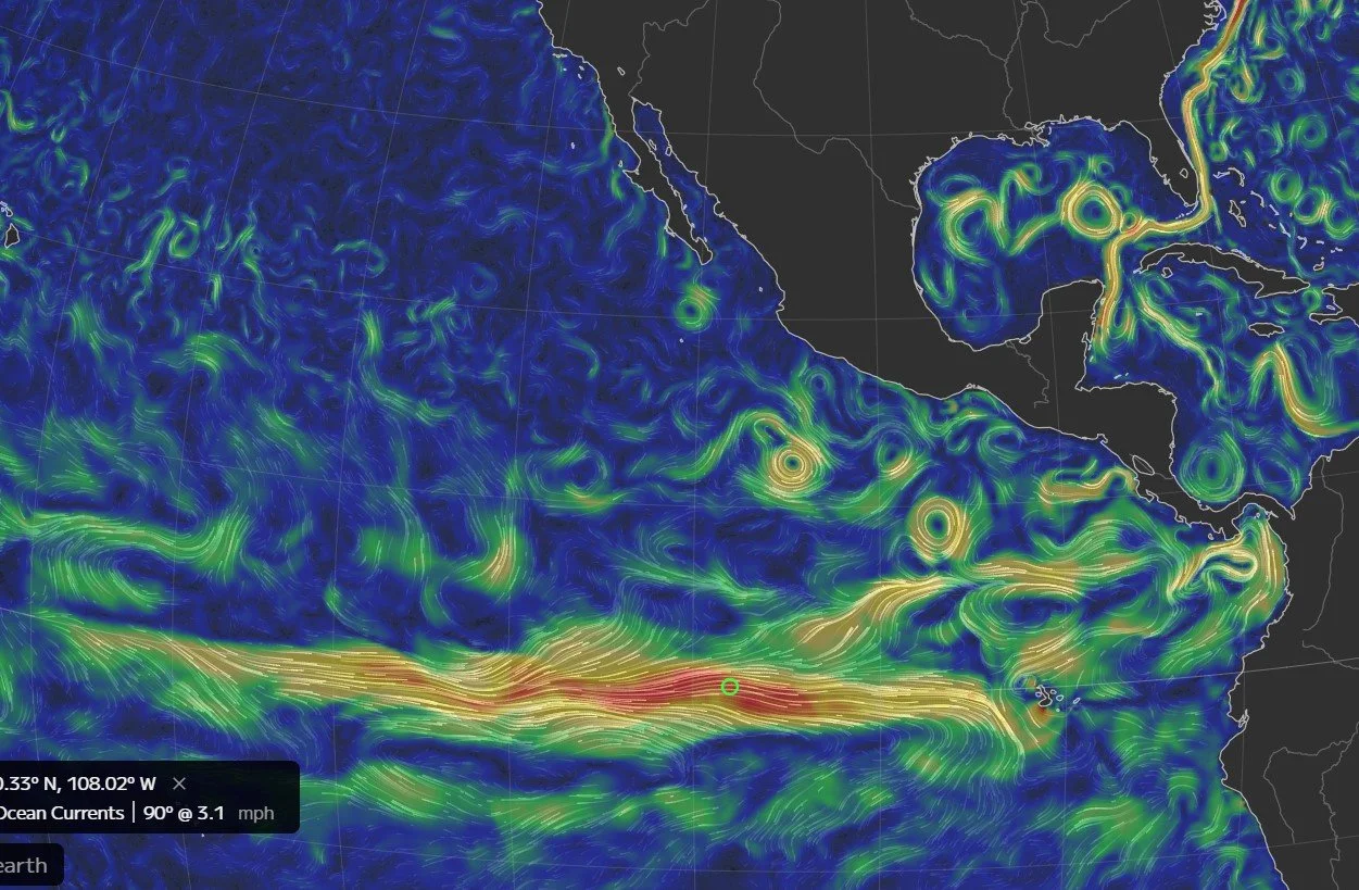 A look at the oceans currents- showing a strong 3 mile an hour west >> towards the east current!